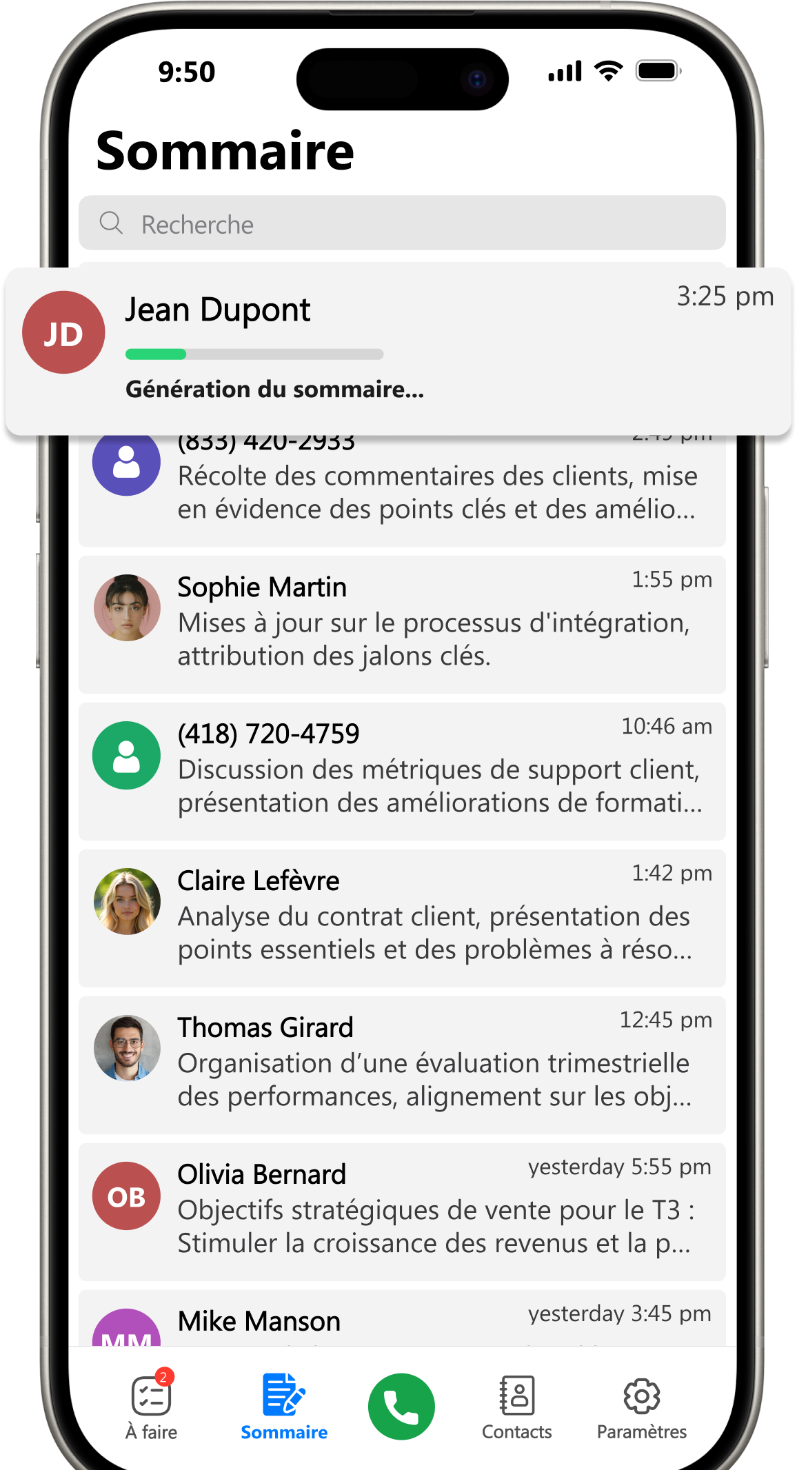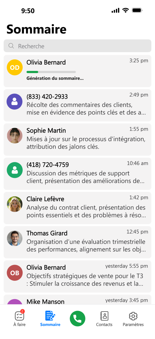 Obtenez des résumés concis de chaque appel téléphonique.